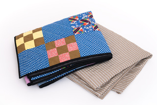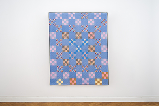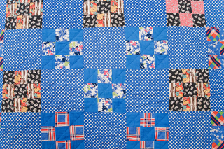 160 x 195 cmpatchwork ca 1930-1960hand stitched cotton nine patchblack and grey striped cotton backing