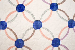 215 x 235 cmpatchwork ca 1970-1980machine pieced cotton, cotton blendoff white cotton backingmachine quilted