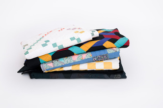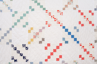 160 x 160 cmpatchwork ca 1920-1950mostly hand stitched, cottonice blue, white striped fine cotton backinghand quilted