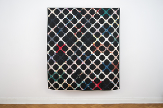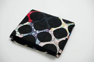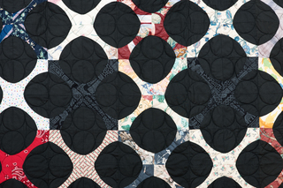 195 x 220 cmpatchwork ca 1960-1980hand stitched black snowballscotton, cotton blendbatting and backside cottonmachine quilting